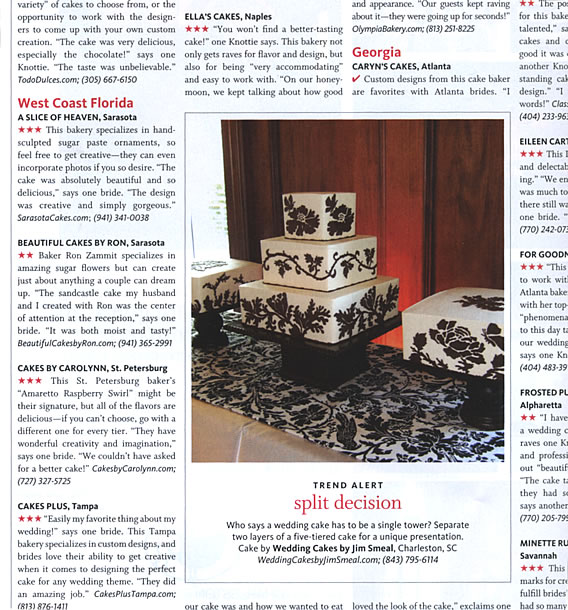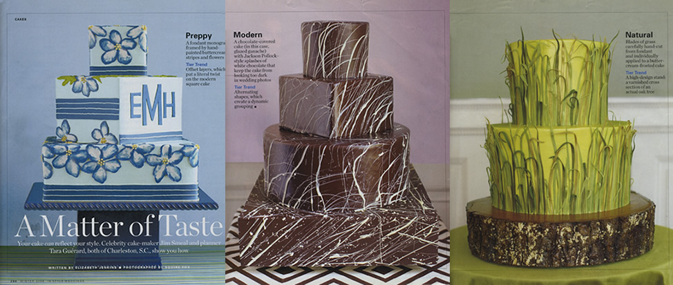 Jim's cakes are featured in Tara Guérard's Southern Wedding (2007) & Weddings by Tara Guérard (2010)